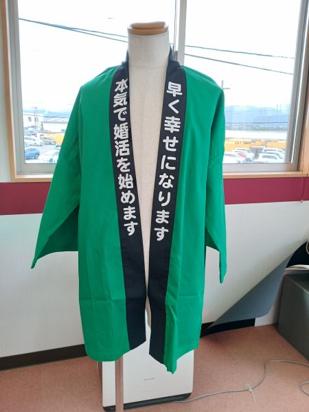 はっぴ製作事例愛知県Y様::はっぴ印刷コミコミプラン(両衿9文字以上・背中30×30cm)製作事例 更新日 2026年3月26日2024年10月24日1 分 (目安の読了時間) ■生地 :T/C素材(ポリエステルと綿の混合)■背中印刷:約30×30cm■両衿印刷:約4×40cm 商品詳細はコチラ→