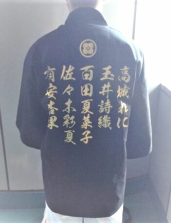 はっぴ製作事例福島県O様:はっぴ製作(両衿・背中30×30cm)オリジナルプリント 製作事例 更新日 2026年4月6日2025年2月12日1 分 (目安の読了時間) ■生地 :T/C素材(ポリエステルと綿の混合)■背中印刷:約30×30cm■両衿印刷:約4×30cm 商品詳細はコチラ→