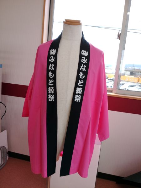 はっぴ製作事例茨城県H様:はっぴ製作(両衿)オリジナルプリント 製作事例 更新日 2026年3月26日2024年10月25日1 分 (目安の読了時間) ■生地 :日本製 綿100%■両衿印刷:約4×30cm 商品詳細はコチラ→
